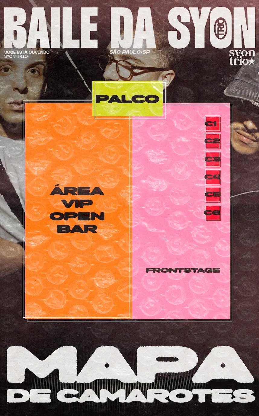 Preparados para a maior edição da história? SYON é um trio brasileiro que manda super bem no pop alternativo, misturando beats modernos com letras bem emotivas. Eles têm uma identidade forte, tanto no som quanto no visual, e falam muito sobre sentimentos, autoconhecimento e vivências da juventude. Com essa vibe sincera e autêntica, estão ganhando cada vez mais espaço na cena indie BR.
