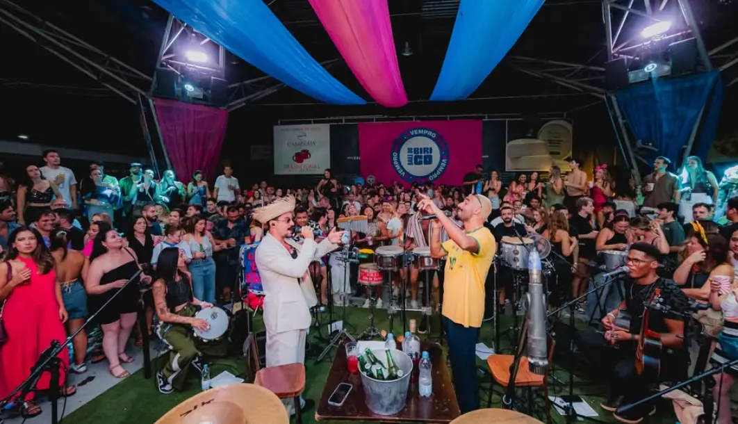 O Baile do Birico é uma festa conhecida pelo clima leve e descontraído, centrada em uma grande roda de samba onde músicos e público se misturam em uma experiência coletiva. O evento costuma reunir amigos, música brasileira e muita cantoria em volta da banda, que conduz um repertório cheio de clássicos do samba e da MPB. Com um formato mais próximo e informal, sem aquela distância tradicional de palco, o Baile do Birico cria um ambiente de celebração, onde a ideia é cantar junto, brindar com um “birico” gelado e aproveitar a energia de uma roda de samba animada.