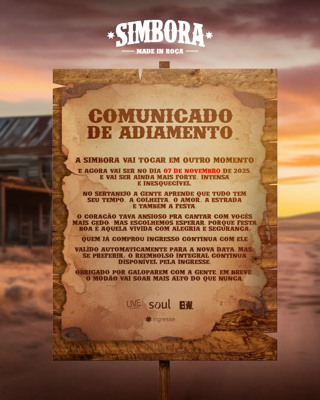 A Festa Simbora chega para quem ama sertanejo! A festa foi adiada para dia 07 de novembro na Fábrica de Impressões, em São Paulo: