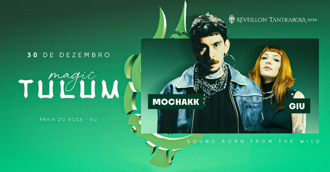 A Magic Tulum no Réveillon Tantrarosa é aquele tipo de festa que mistura intensidade e muita pista boa — tudo no cenário paradisíaco do Tantrarosa, pra fechar o ano com estilo. Com uma curadoria musical refinada, inspirada nas vibes de Tulum, ela entrega um som profundo, visual caprichado e uma atmosfera de conexão que faz a experiência ser muito mais do que só dançar. No line up já estão confirmados Mochakk e Giu!