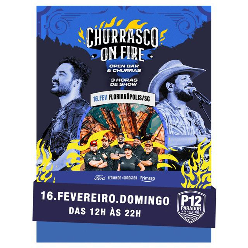 Com três horas de show da dupla Fernando e Sorocaba, o "Churrasco On Fire" traz grandes sucessos no repertório além de um open churrasco por quatro horas, assinado por chefs renomados e uma seleção premium de carnes e pratos tradicionais como picanha, chorizo, brisket, costela, bife de ancho, hambúrguer e até mesmo sobremesas especiais.