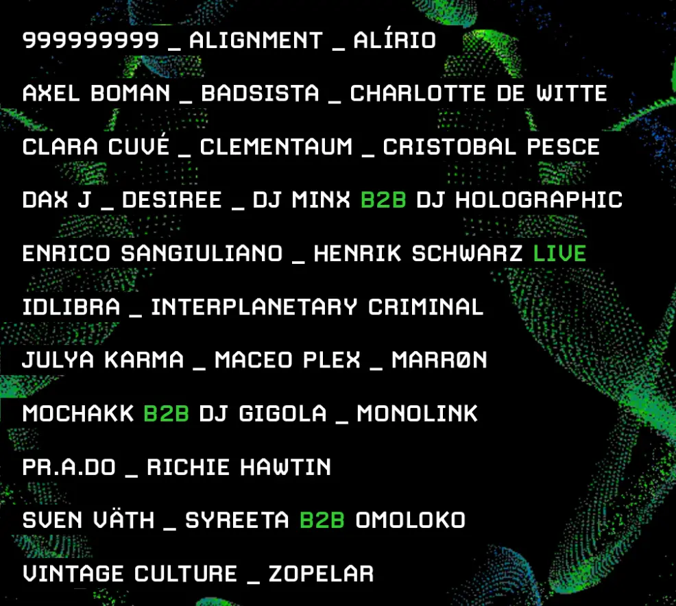 O festival é reconhecido mundialmente por reunir grandes artistas da cena do Techno e do House, como Charlotte de Witte, Amelie Lens, Adam Beyer, Mochakk, Honey Dijon, Adriatique e mais! Isso tudo sem contar a estrutura impecável que sempre traz uma decoração incrível para compor a pista. A edição de 2024 promete ser imperdível e de muito sucesso, como foram todas as outras edições no Brasil!