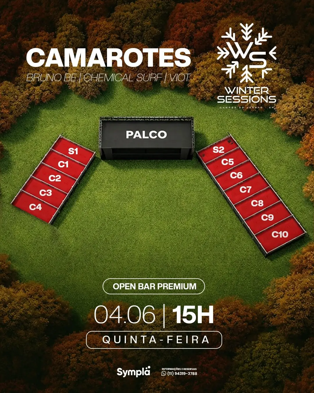 A Winter Sessions Campos de Jordão confirmou sua edição para a temporada de inverno de 2026, durante o feriado de Corpus Christi, para acontecer no dia 04 de junho, na Pousada C Turismo em Capivari! Venha curtir essa energia incrível com o já tradicional e de altíssima qualidade Full Open Bar Premium e grandes DJs!